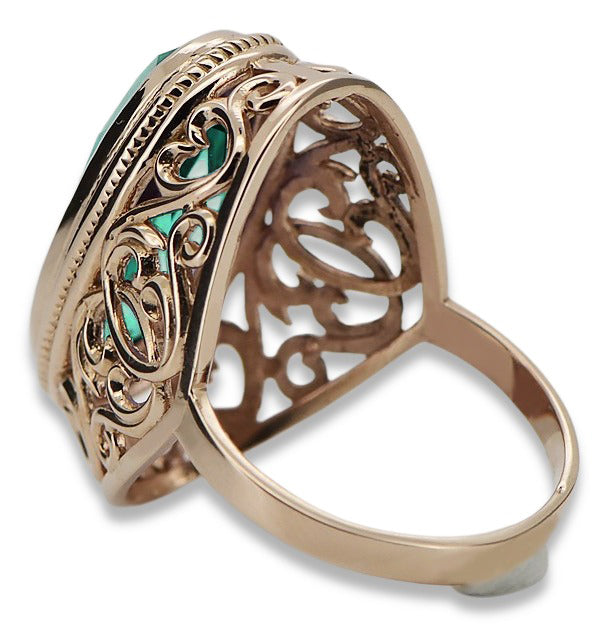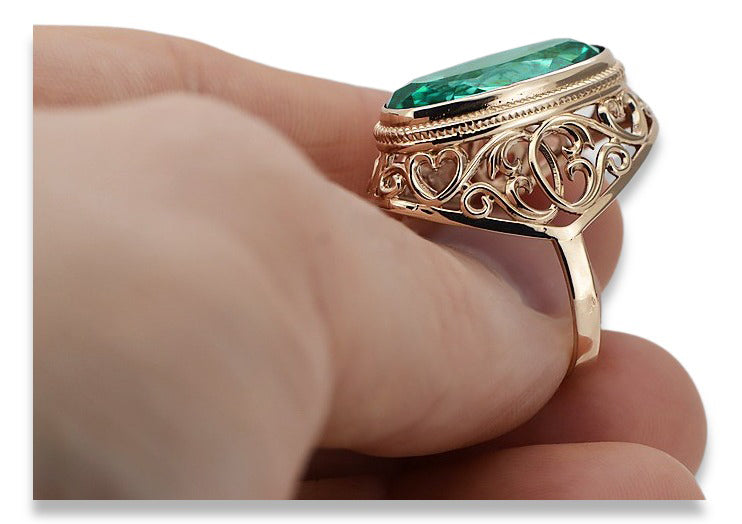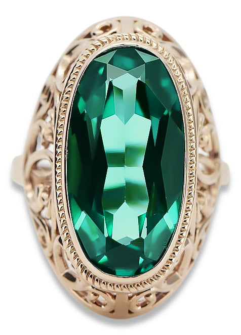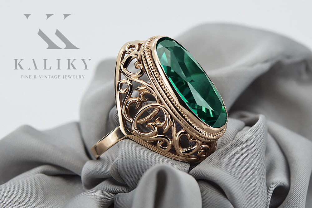 14k Rose Gold Emerald Ring, Vintage Oval Cut