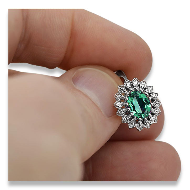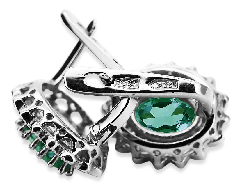 These exquisite 14k white gold emerald earrings embody the elegance and artistry of Russian vintage jewelry. A testament to enduring style and masterful craftsmanship, these earrings capture the spirit of a bygone era, offering a glimpse into the opulent world of Soviet-era artistry. Adorn yourself with a piece of history and experience the timeless allure of these stunning vintage treasures.