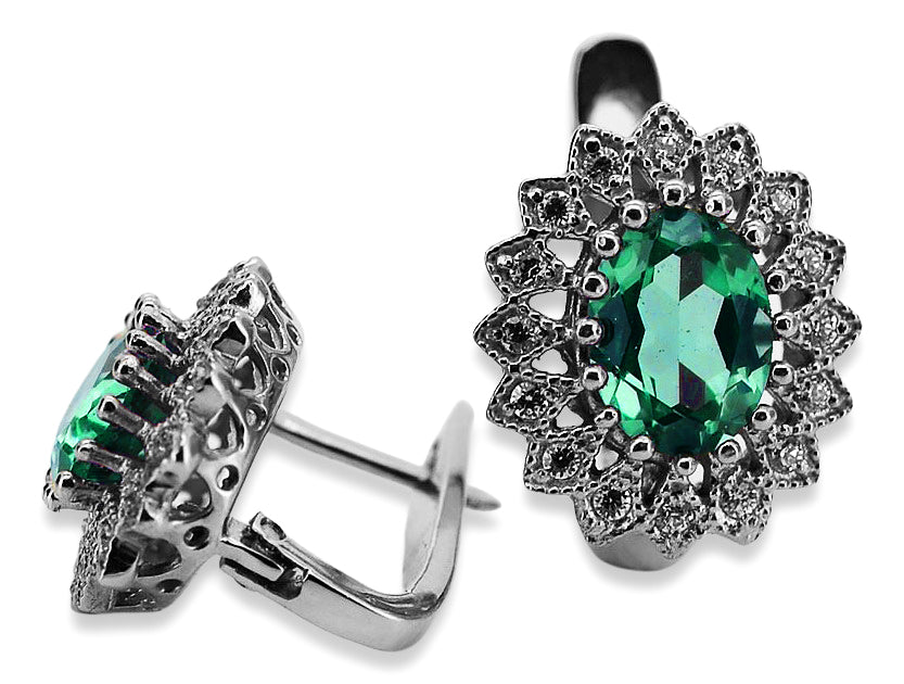 14k white gold 585 emerald earrings vec125w Vintage vec125w-em