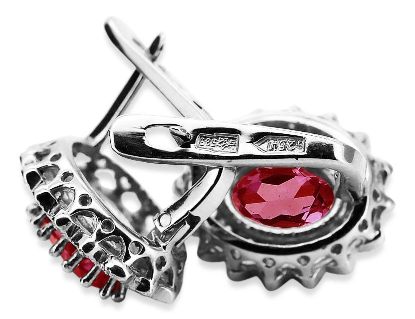 Embrace the allure of a bygone era with these exquisite 14k white gold ruby earrings. A testament to Soviet craftsmanship, these earrings evoke a sense of timeless elegance and refined luxury. Adorn yourself with a piece of history, a treasure that whispers stories of romance and enduring beauty. These earrings are more than just jewelry; they are wearable art, destined to become a cherished heirloom.