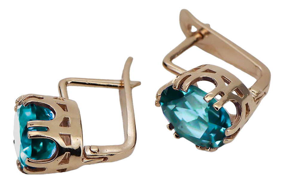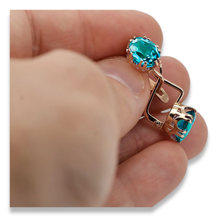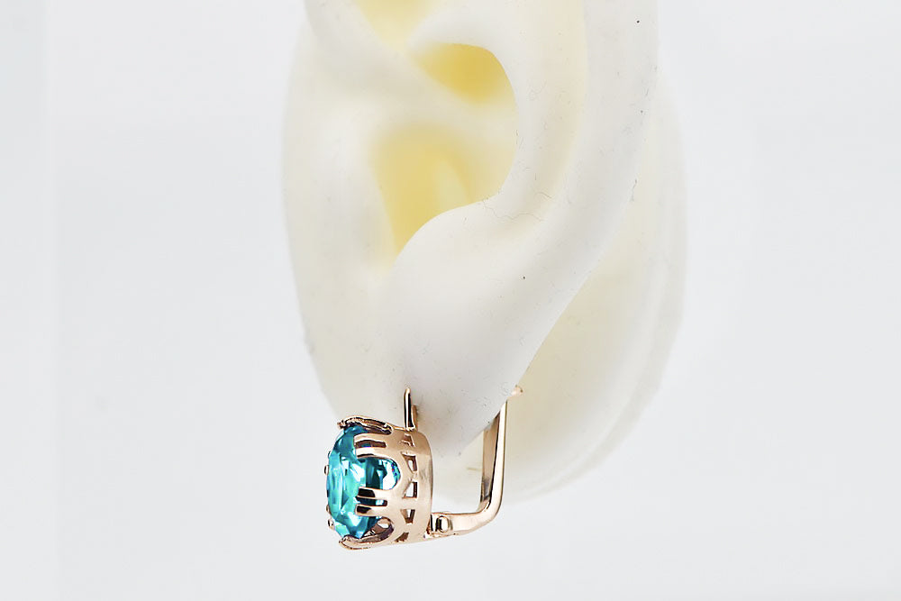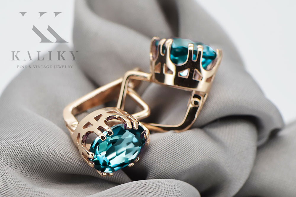 Immerse yourself in the captivating allure of a bygone era with these exquisite Aquamarine Original Vintage 14K Rose Gold Earrings. A testament to enduring craftsmanship and timeless design, these earrings embody the elegance and sophistication of Russian vintage jewelry. These stunning earrings, a true piece of soviet jewelry, will add a touch of refined luxury to any ensemble and are sure to become a cherished heirloom.