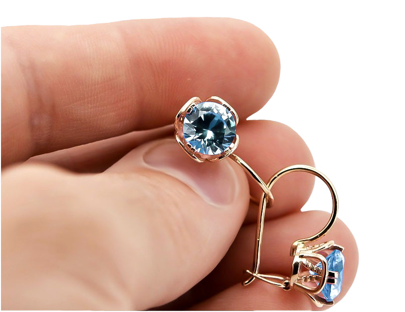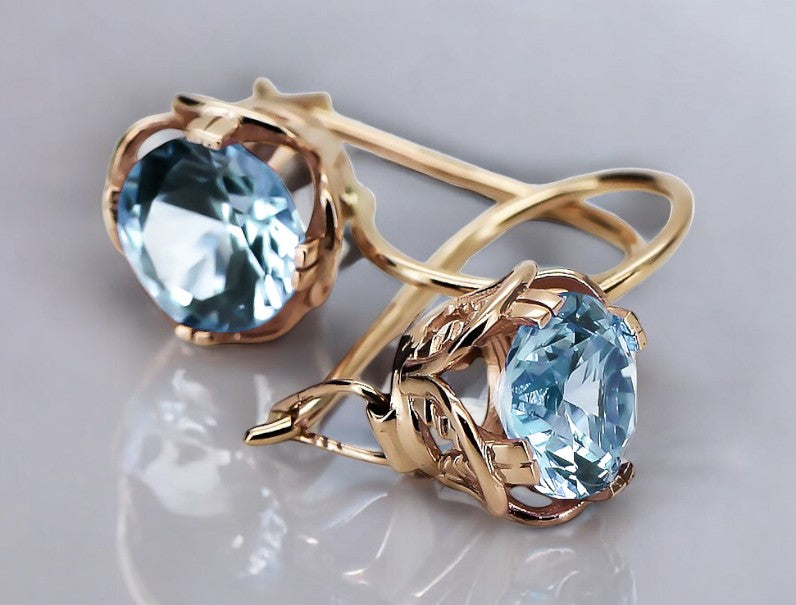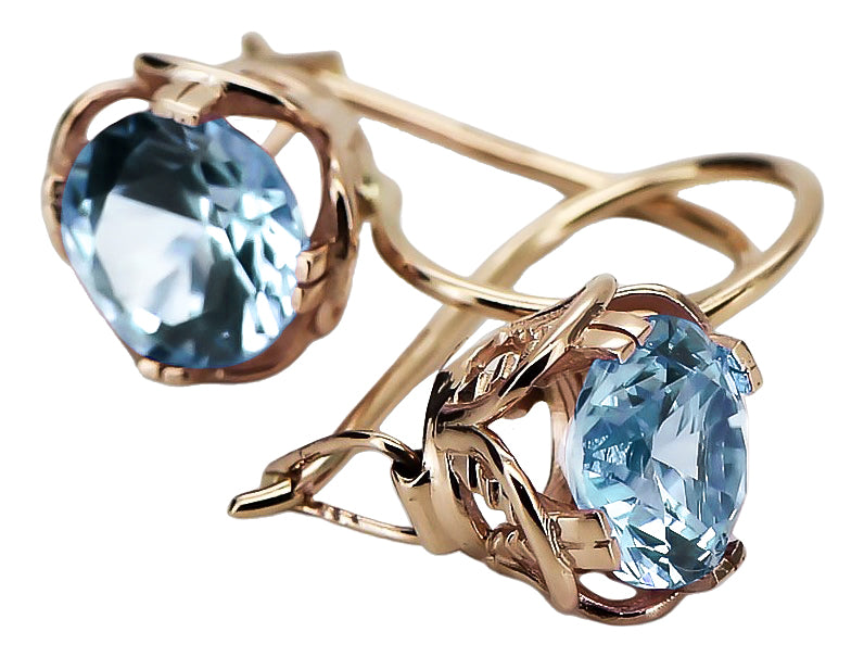 Aquamarine Original Vintage 14K Rose Gold Earrings Vintage Jewlery vec029r vec029r-aq