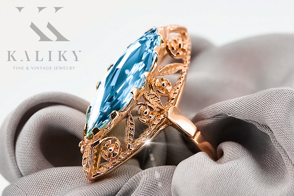 Aquamarine Original Vintage 14K Rose Gold Ring Vintage style vrc005r