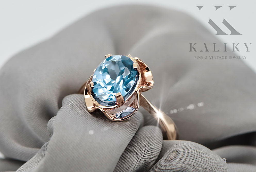 Aquamarine Original Vintage 14K Rose Gold Ring Vintage style vrc206r