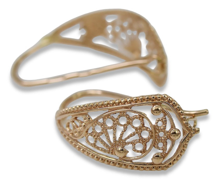 Step back in time and embrace the allure of a bygone era with these exquisite vintage 14K rose gold earrings. A testament to Soviet craftsmanship, these floral-inspired treasures embody elegance and timeless style. More than just jewelry, they are a piece of history, ready to adorn your ears with a touch of old-world charm.