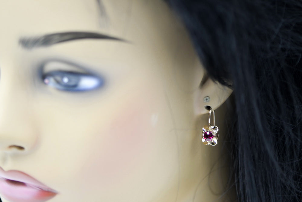These 14K gold earrings are a remarkable example of Soviet jewelry craftsmanship. The rich rose gold beautifully complements the vibrant ruby stones, creating a harmonious blend of color and texture. Ideal as a gift or a cherished addition to your own collection, these earrings are a symbol of enduring love and timeless style.