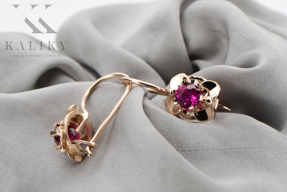 Capture the allure of a bygone era with these exquisite Ruby Original Vintage Earrings. Crafted from 14K rose gold during the Soviet era, these earrings embody the timeless elegance and artistry of Russian vintage jewelry. A testament to enduring beauty, these earrings are more than just adornments; they are wearable pieces of history, perfect for adding a touch of sophisticated charm to any ensemble.