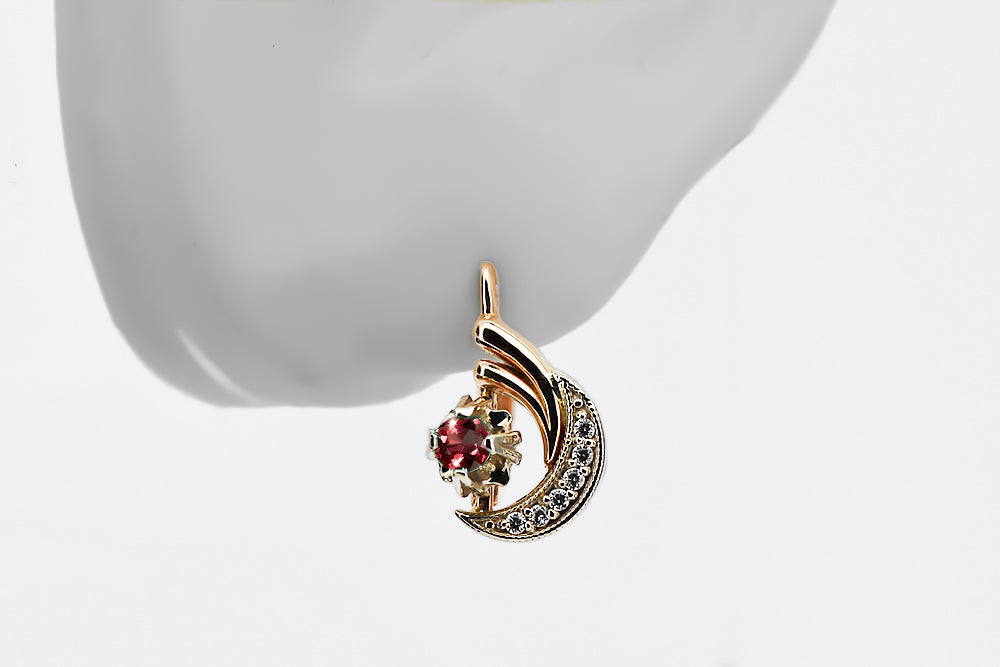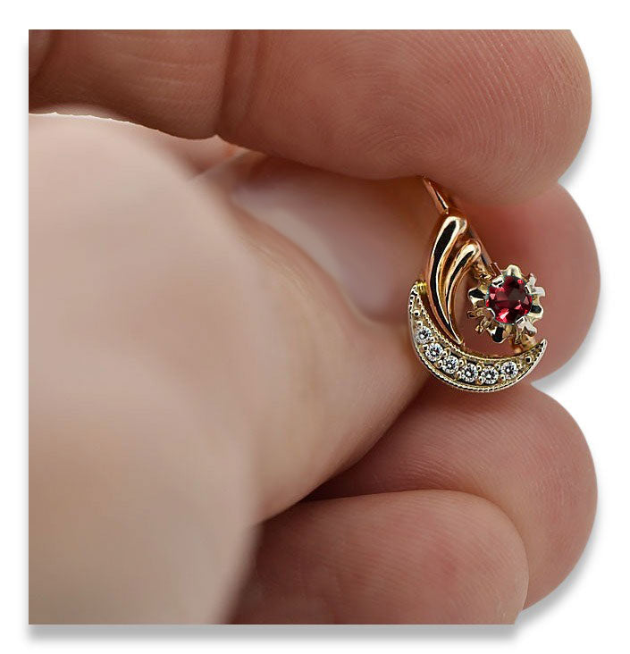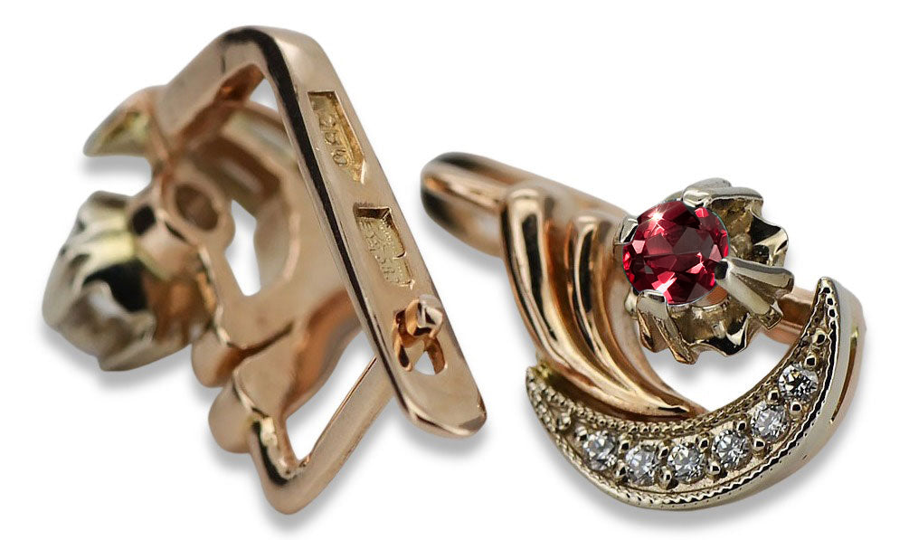 Embrace the allure of a bygone era with these exquisite vintage earrings, a testament to the enduring artistry of Russian Soviet jewelry. These 14K rose and white gold earrings, adorned with vibrant rubies and sparkling cubic zirconia, are more than just accessories; they are heirlooms imbued with history and elegance. A perfect embodiment of luxury and craftsmanship, these earrings offer a glimpse into the opulent world of vintage design.