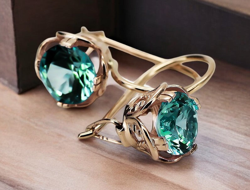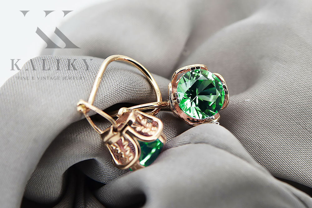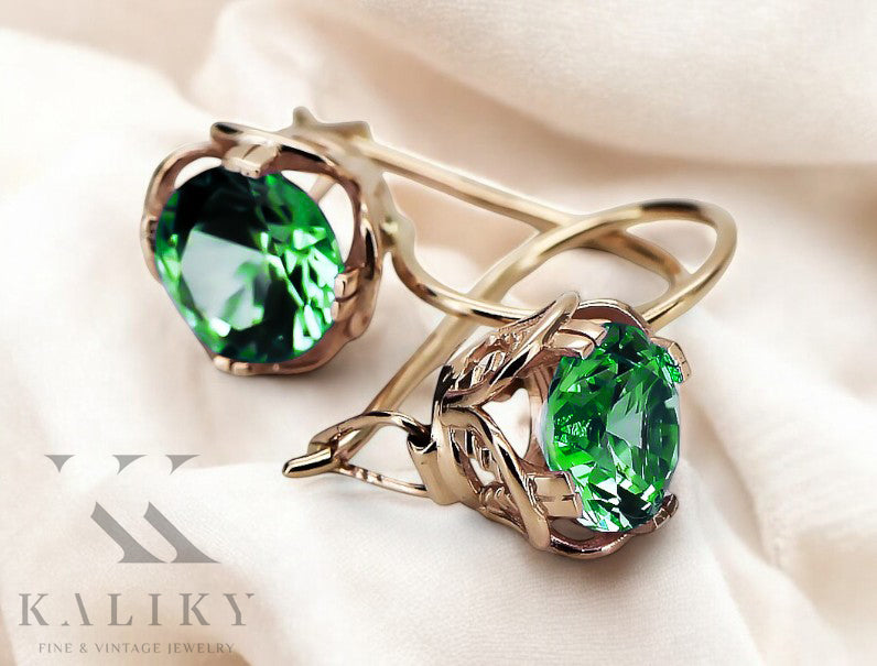 These exquisite Vintage Emerald Earrings, crafted in 14K rose gold during the Soviet era, are a testament to enduring elegance and masterful craftsmanship. A captivating blend of history and luxury, this piece embodies the refined aesthetic of Russian vintage jewelry, making it a cherished heirloom for generations to come. Adorn yourself with a piece of history, a symbol of timeless beauty and sophistication.