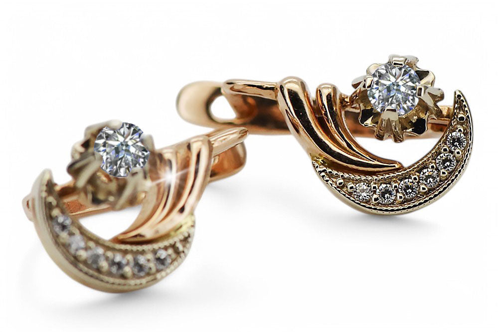Embrace the allure of a bygone era with these exquisite vintage-style earrings. A testament to Soviet craftsmanship, these earrings capture the spirit of luxury and enduring elegance. These earrings, crafted from 14K rose and white gold, are a stunning example of Russian vintage jewelry design, perfect for adding a touch of historical glamour to any ensemble.