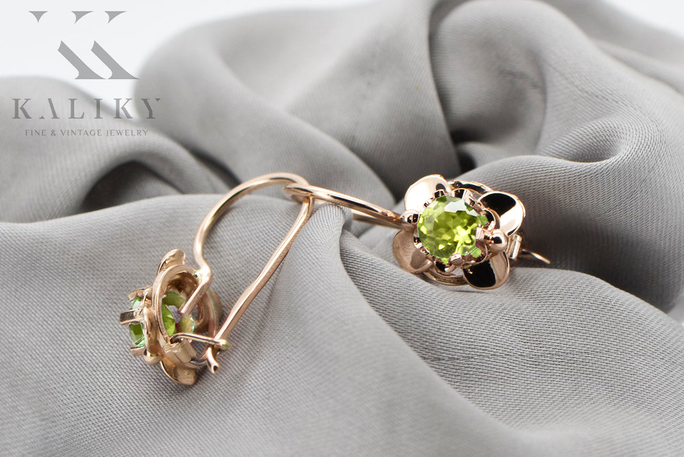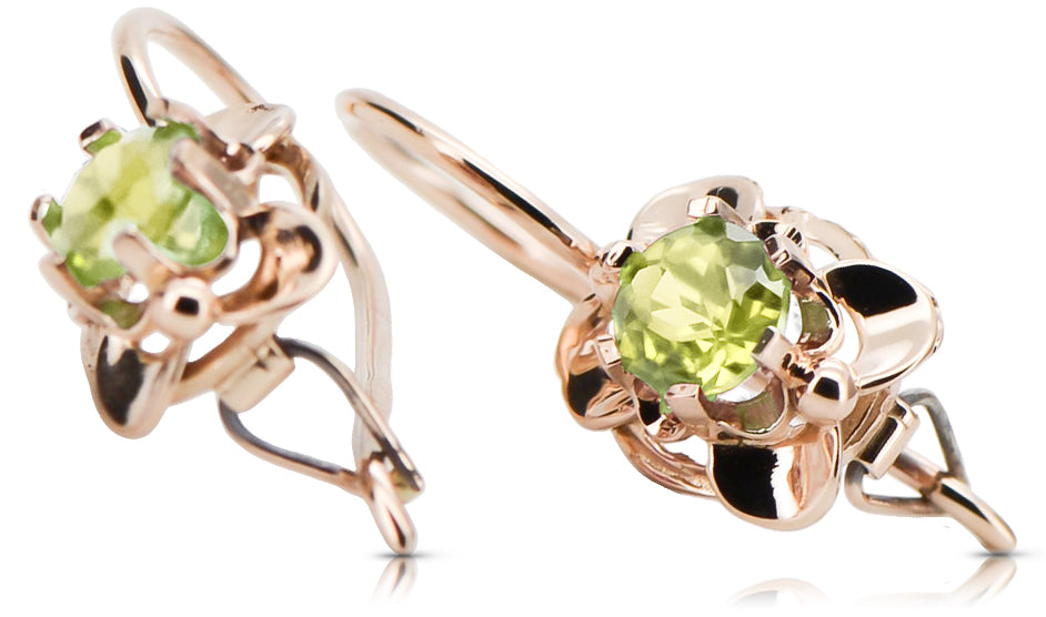 Adorn your ears with a touch of history and timeless elegance. These exquisite earrings are a testament to the enduring artistry of Russian Soviet vintage jewelry, crafted in radiant 14K rose gold and featuring captivating yellow peridot stones. A perfect embodiment of sophistication and vintage charm, these earrings are sure to become a cherished heirloom.