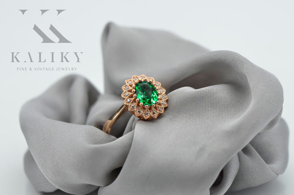 Emerald Original Vintage 14K Rose Gold Ring Vintage style crc012r