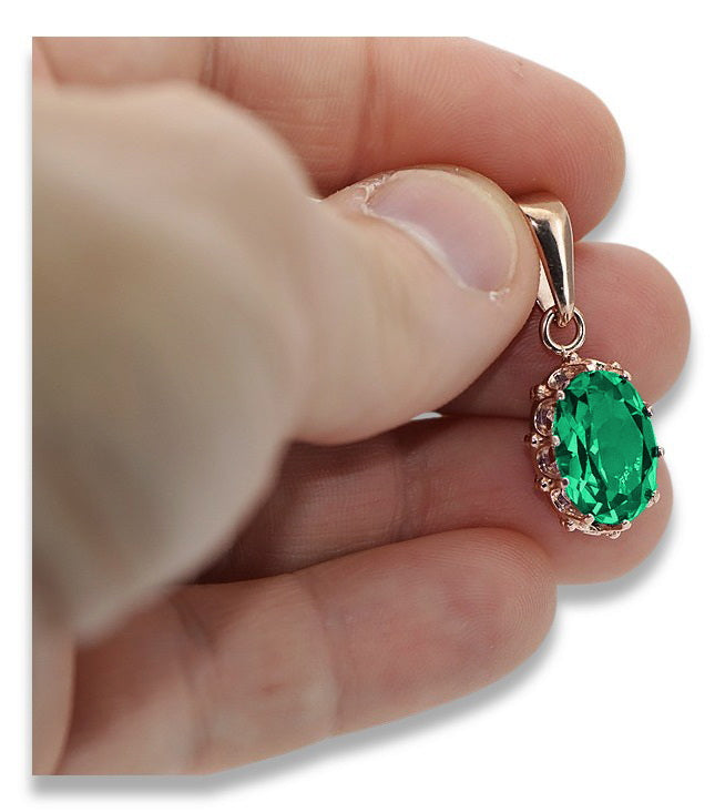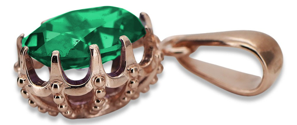 Original Vintage 14K Rose Gold Emerald Pendant Vintage craft vpc008r vpc008r-em