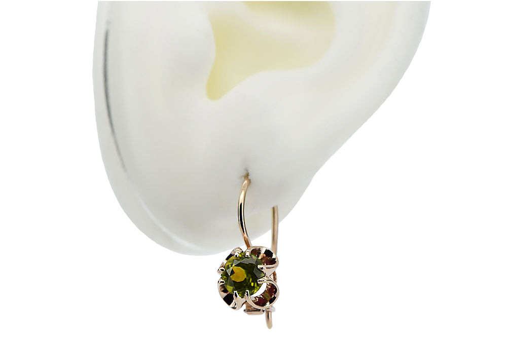 These earrings are more than just adornments; they are heirlooms that whisper stories of the past. The vibrant yellow peridot gemstones, set in the warm embrace of 14K rose gold, create a captivating contrast that will illuminate your every gesture. Discover the charm of authentic Russian vintage jewelry and add a touch of history to your personal style.