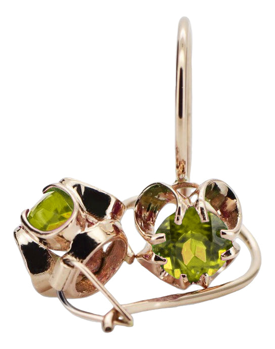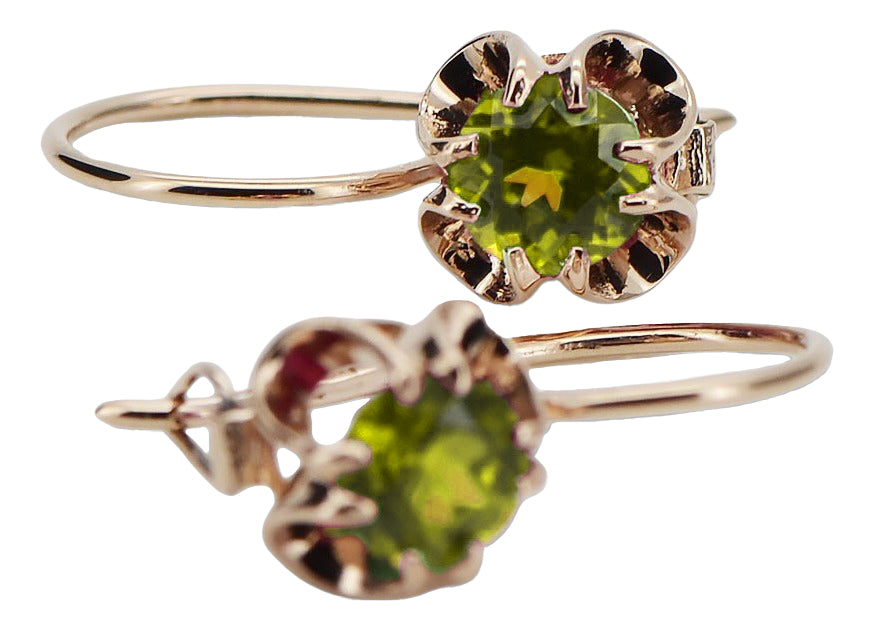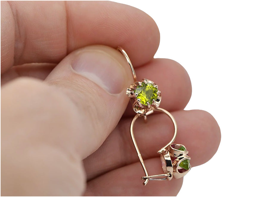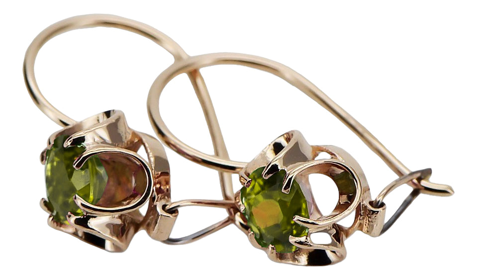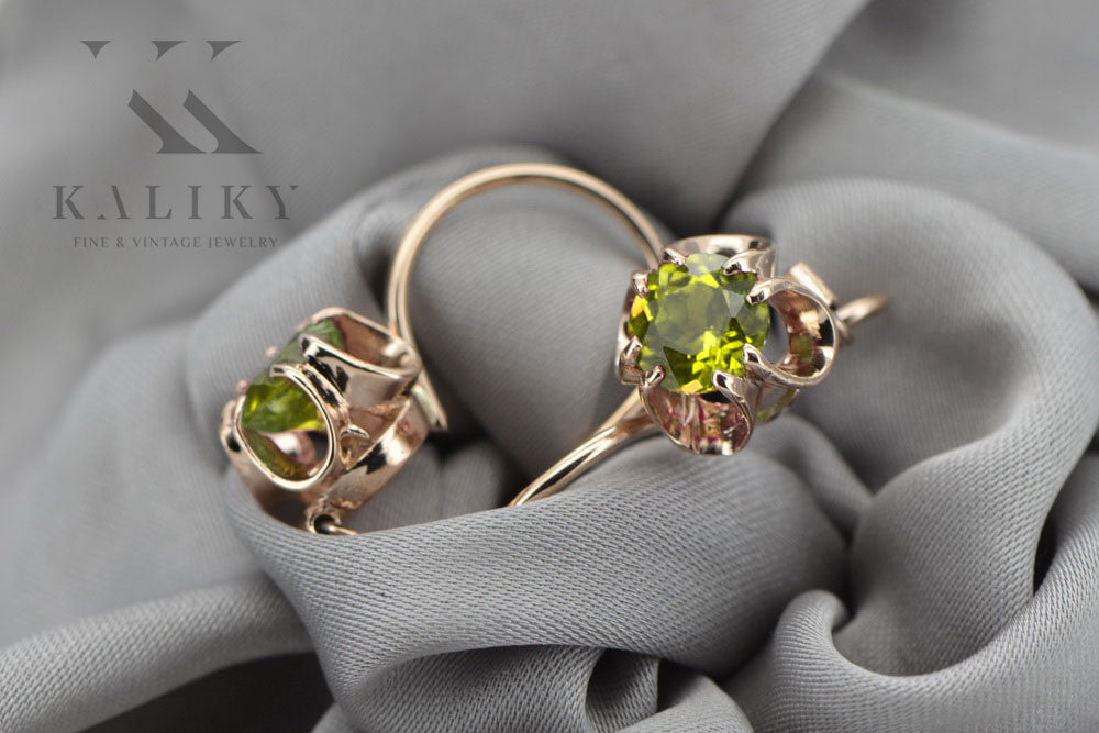 Embrace the allure of a bygone era with these exquisite Original Vintage 14K Rose Gold Yellow Peridot Earrings. A testament to the enduring elegance of Russian vintage jewelry, these earrings capture the opulence and artistry of Soviet-era design. Let these radiant gems and warm rose gold transport you to a time of unparalleled craftsmanship and timeless beauty.