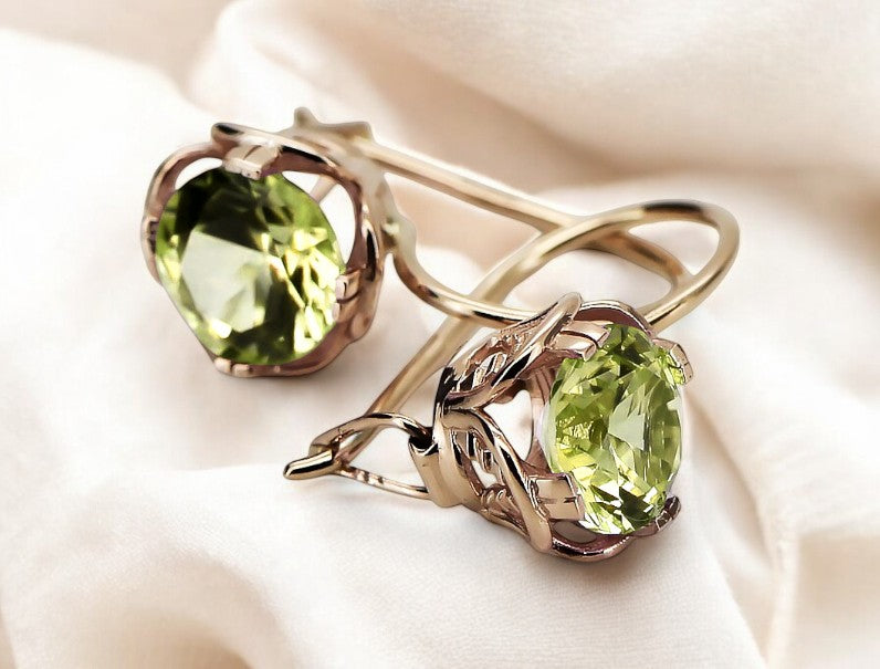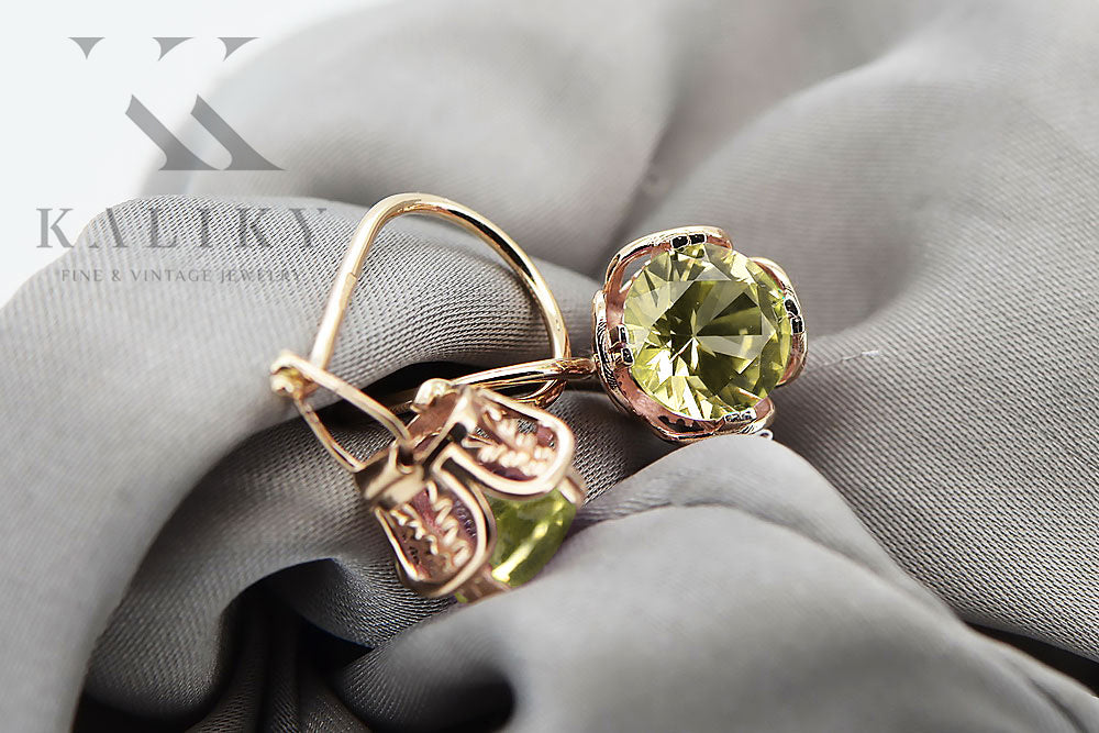 Embrace the allure of a bygone era with these exquisite Original Vintage 14K Rose Gold Yellow Peridot Earrings. A testament to enduring craftsmanship and timeless elegance, these earrings capture the spirit of Soviet artistry. Discover the unique beauty of Russian vintage jewelry, a cherished symbol of history and refined taste.