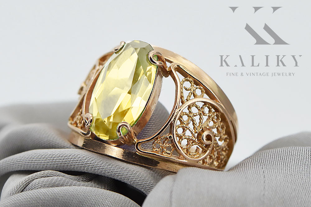 Original Vintage 14K Rose Gold Yellow Peridot Ring Vintage style vrc057r