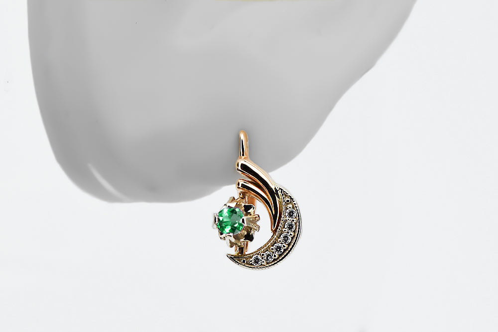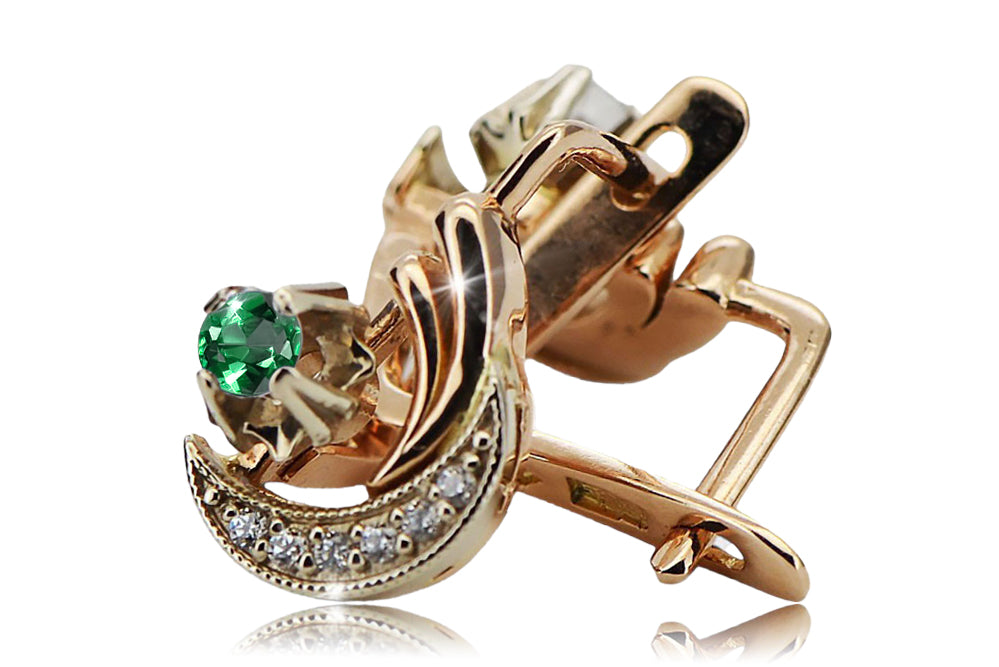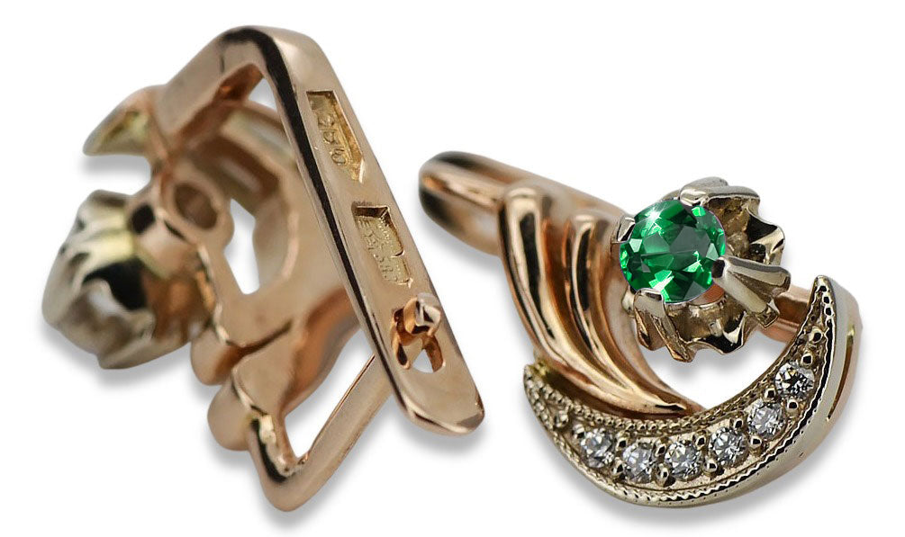 Immerse yourself in the opulence of a bygone era with these exquisite Original Vintage 14K Rose White Gold Emerald Earrings. A testament to Soviet craftsmanship, these earrings embody the elegance and artistry characteristic of Russian vintage jewelry. These 14K gold earrings, adorned with vibrant emeralds and sparkling cubic zirconia, whisper tales of romance and timeless beauty, perfect for adding a touch of vintage luxury to any ensemble.