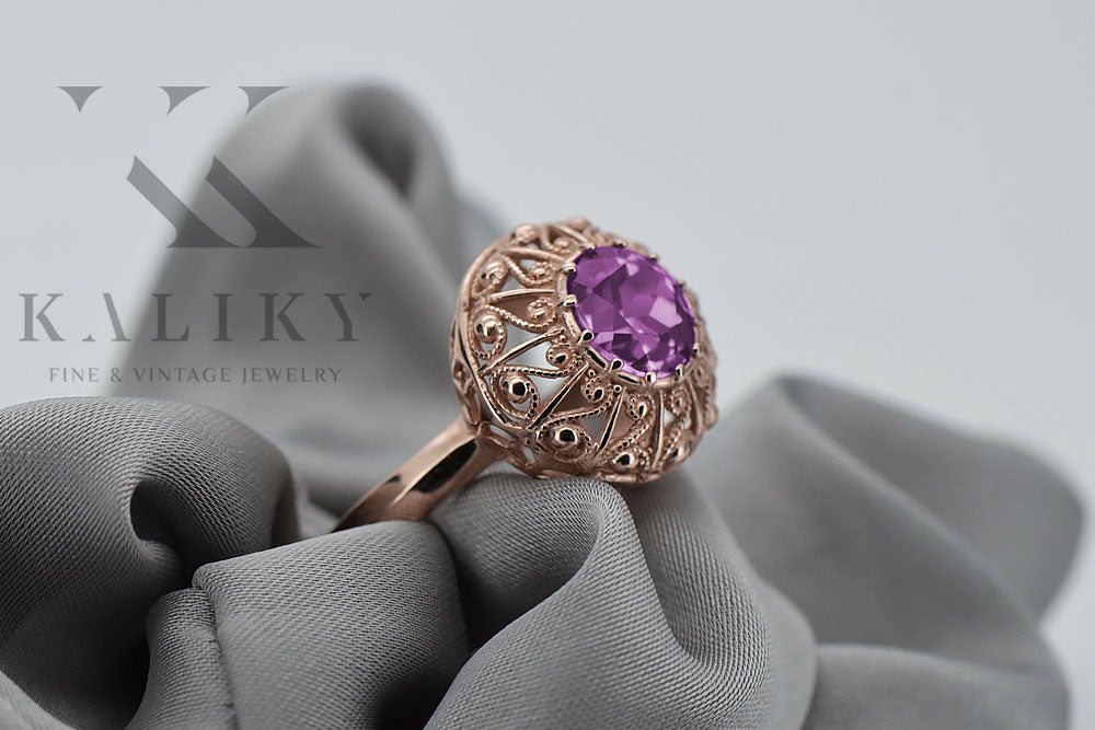 Ring Amethyst Original Vintage 14K Rose Gold Vintage craft vrc059r