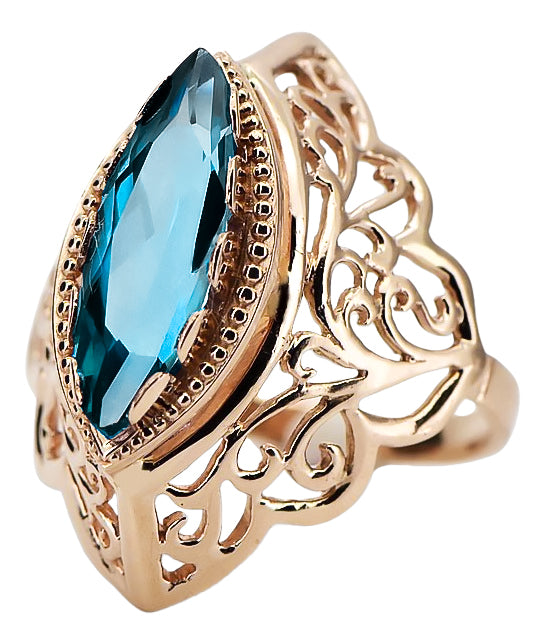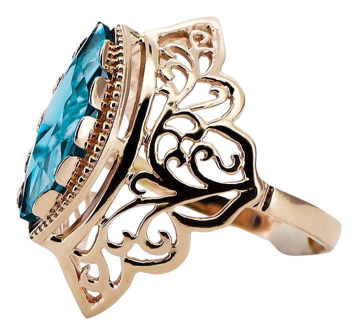 Ring Aquamarine Original Vintage 14K Rose Gold Vintage Jewlery vrc017r