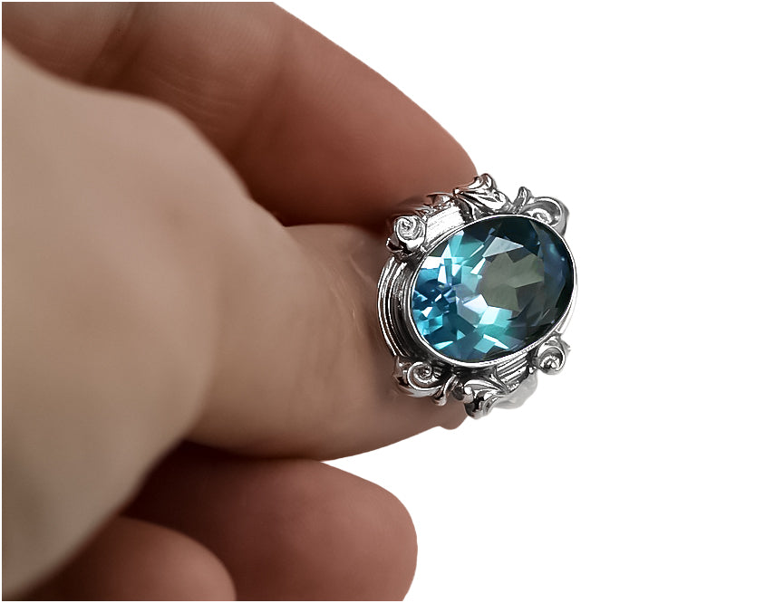 Ring Aquamarine Sterling silver 925 Vintage craft vrc100s
