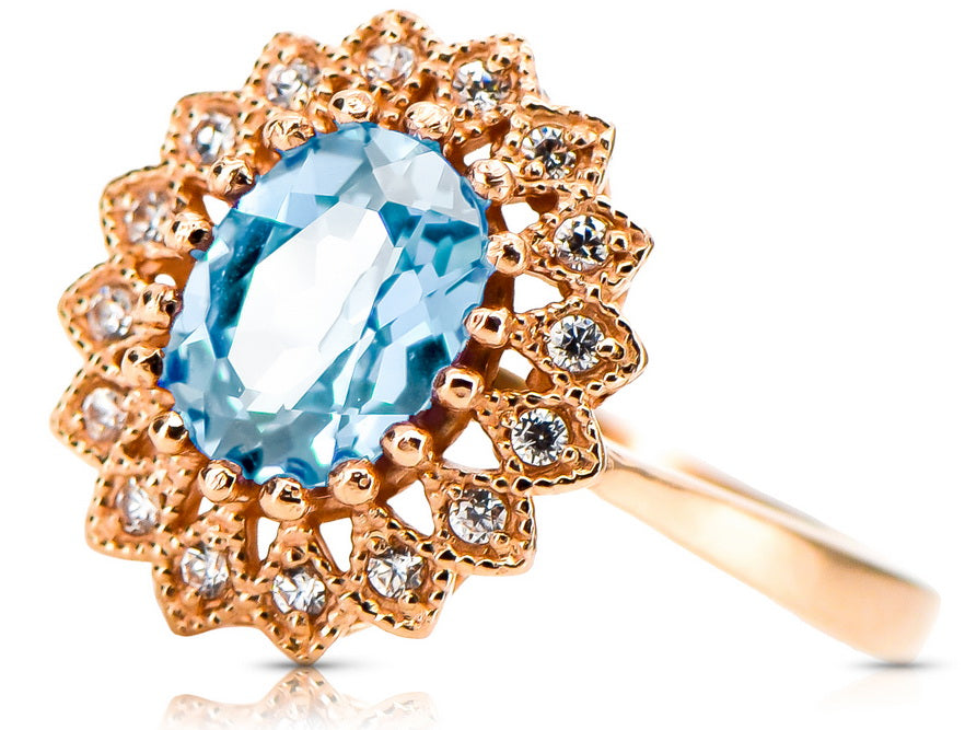 Ring Vintage Aquamarine Original Vintage 14K Rose Gold crc012r
