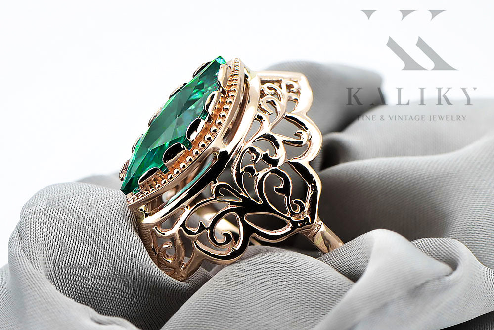 Ring Vintage craft Emerald Original Vintage 14K Rose Gold vrc017r