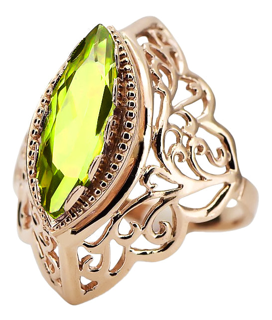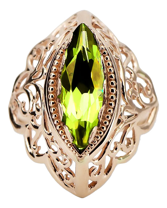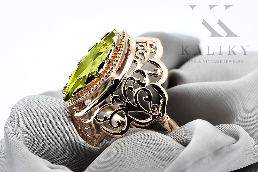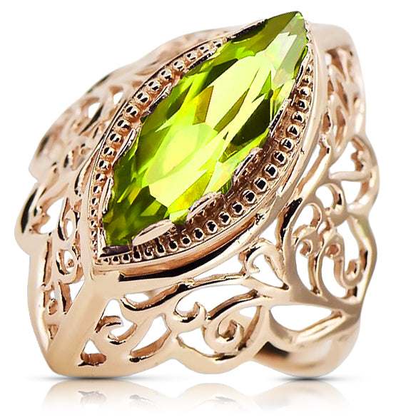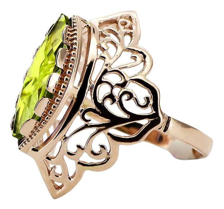 Ring Vintage craft Yellow Peridot Original Vintage 14K Rose Gold vrc017r