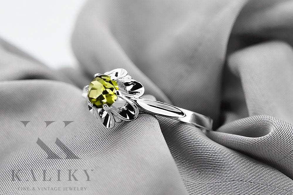 Ring Vintage craft Yellow Peridot Sterling silver 925 vrc004s