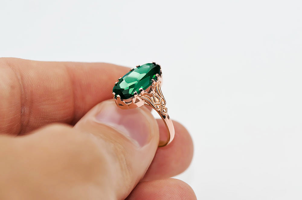 Ring Vintage Emerald Original Vintage 14K Rose Gold vrc058r