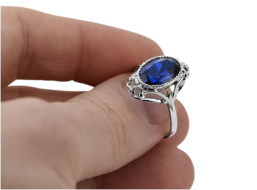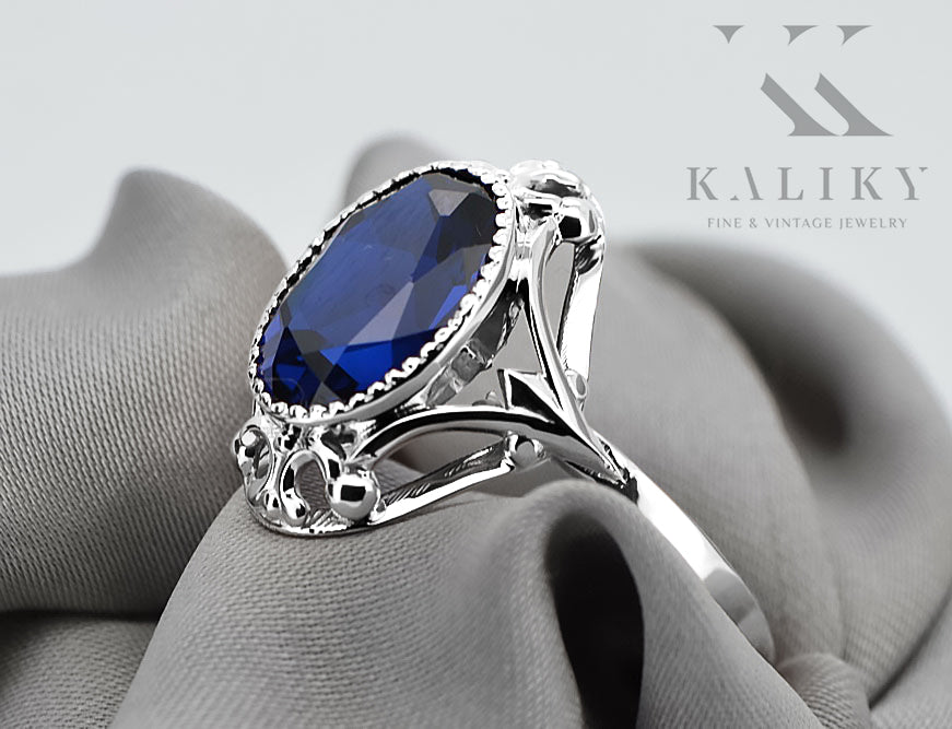 Ring Vintage Jewlery Sapphire Sterling silver 925 vrc128s