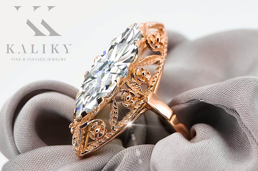 Ring Vintage Jewlery Zircon Original Vintage 14K Rose Gold vrc005r