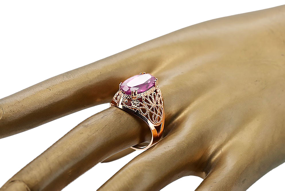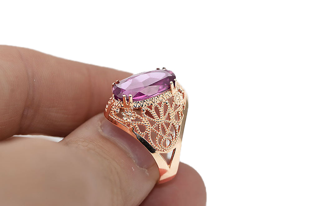 Ring Vintage style Amethyst Original Vintage 14K Rose Gold vrc074r