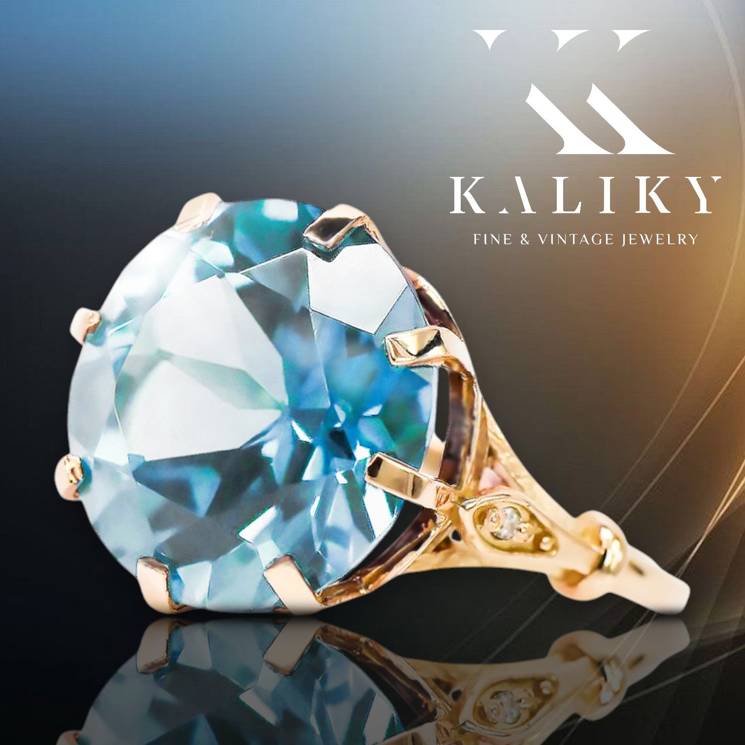 Ring Vintage style Aquamarine Original Vintage 14K Rose Gold vrc073r