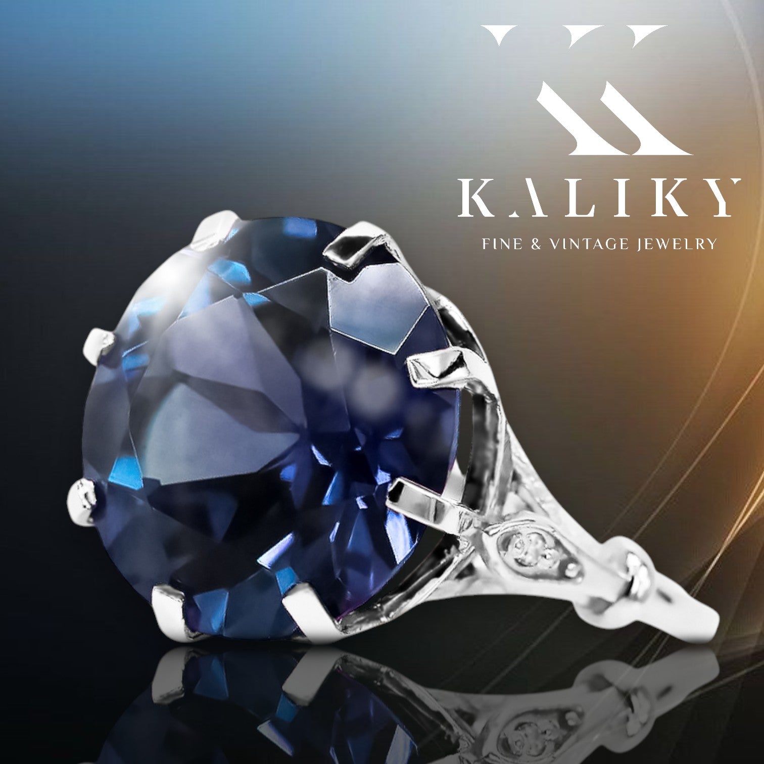 Ring Vintage style Sapphire Sterling silver 925 vrc073s