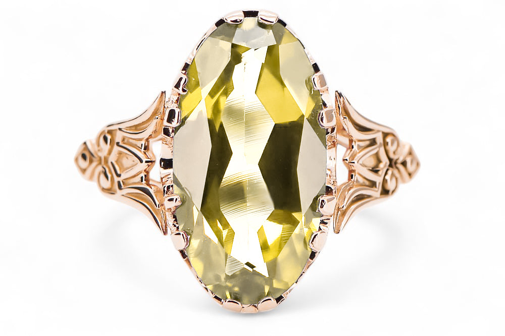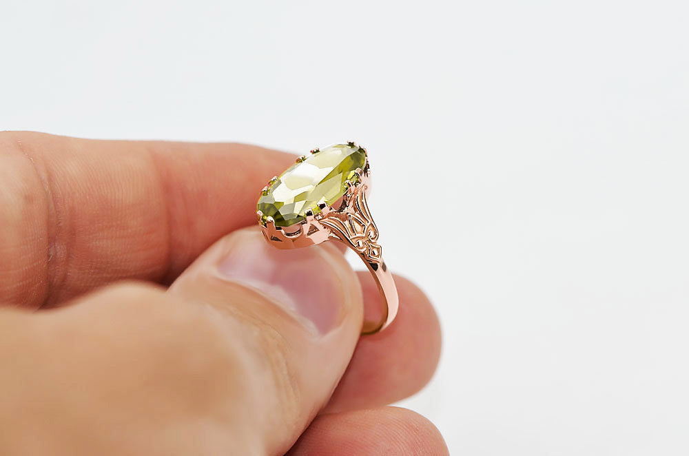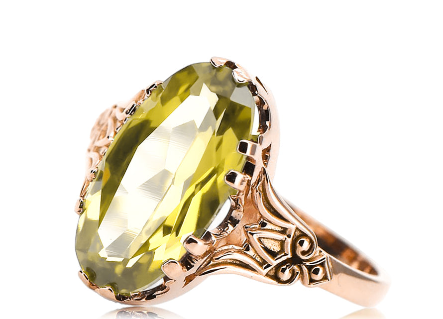 Ring Vintage Yellow Peridot Original Vintage 14K Rose Gold vrc058r