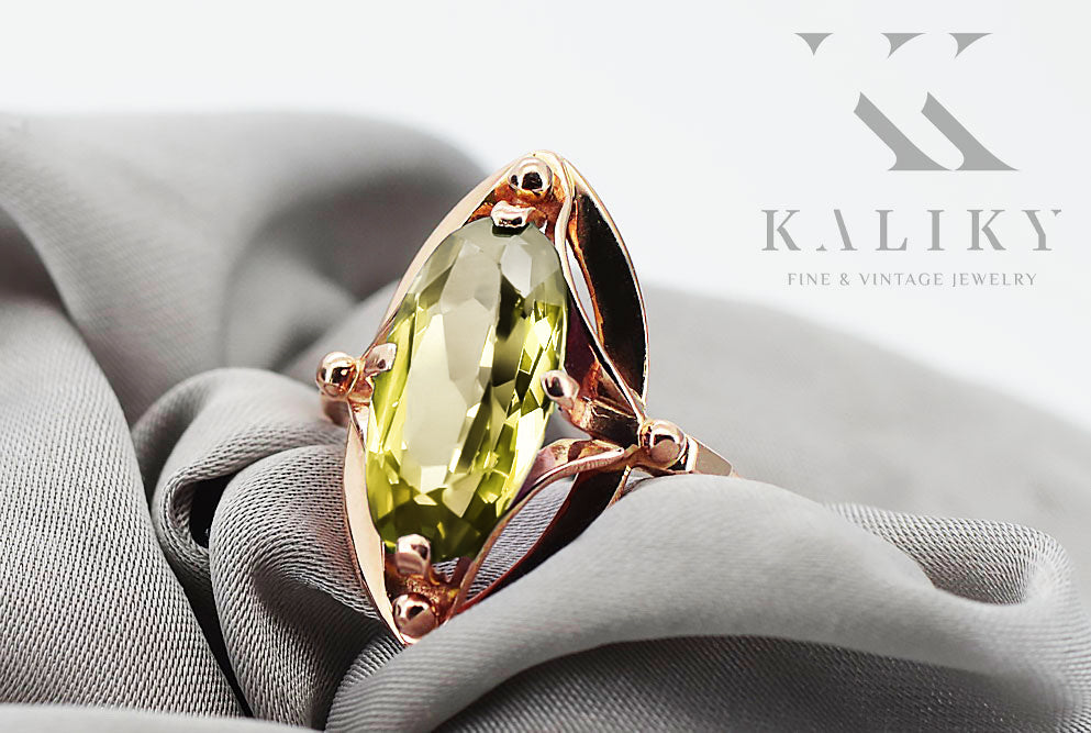 Ring Yellow Peridot Original Vintage 14K Rose Gold Vintage craft vrc047r