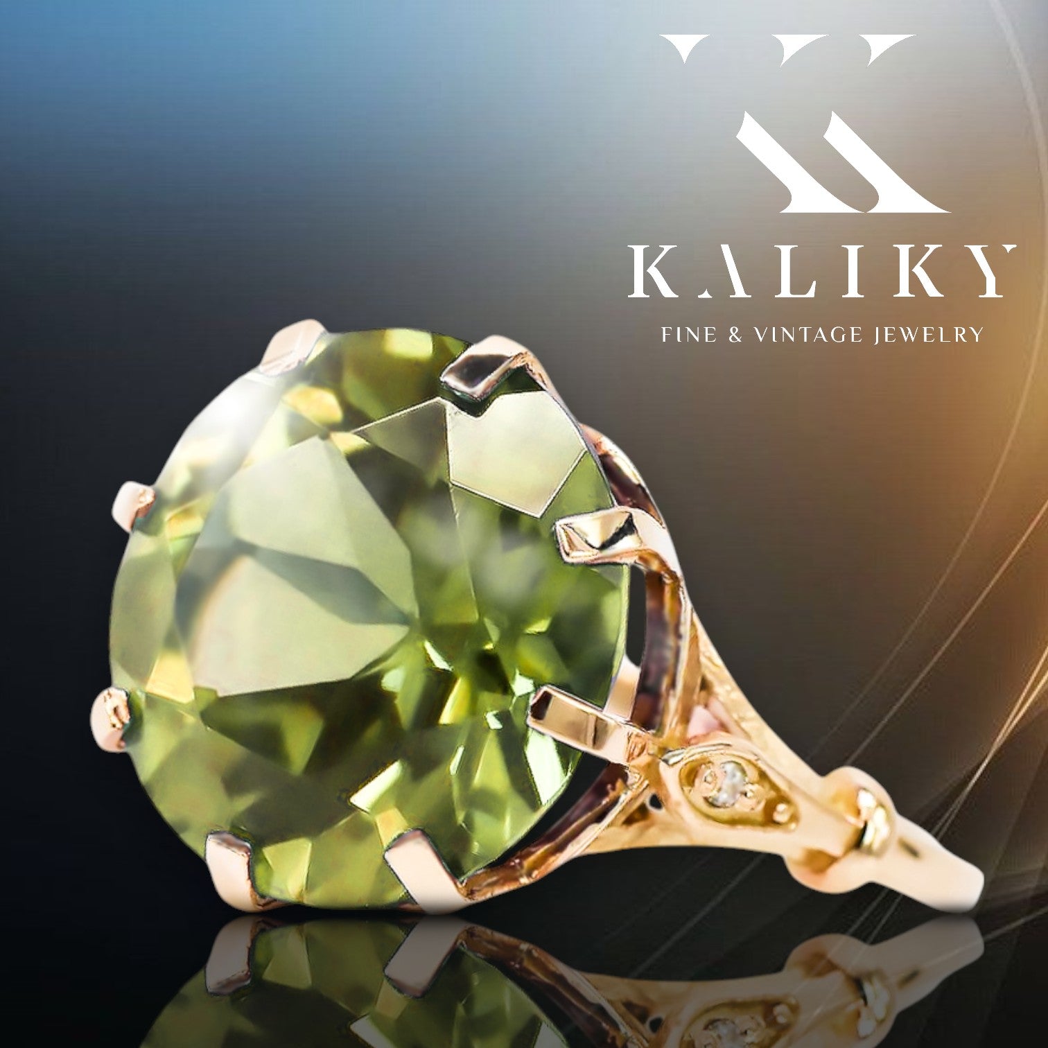 Ring Yellow Peridot Original Vintage 14K Rose Gold Vintage Jewlery vrc073r