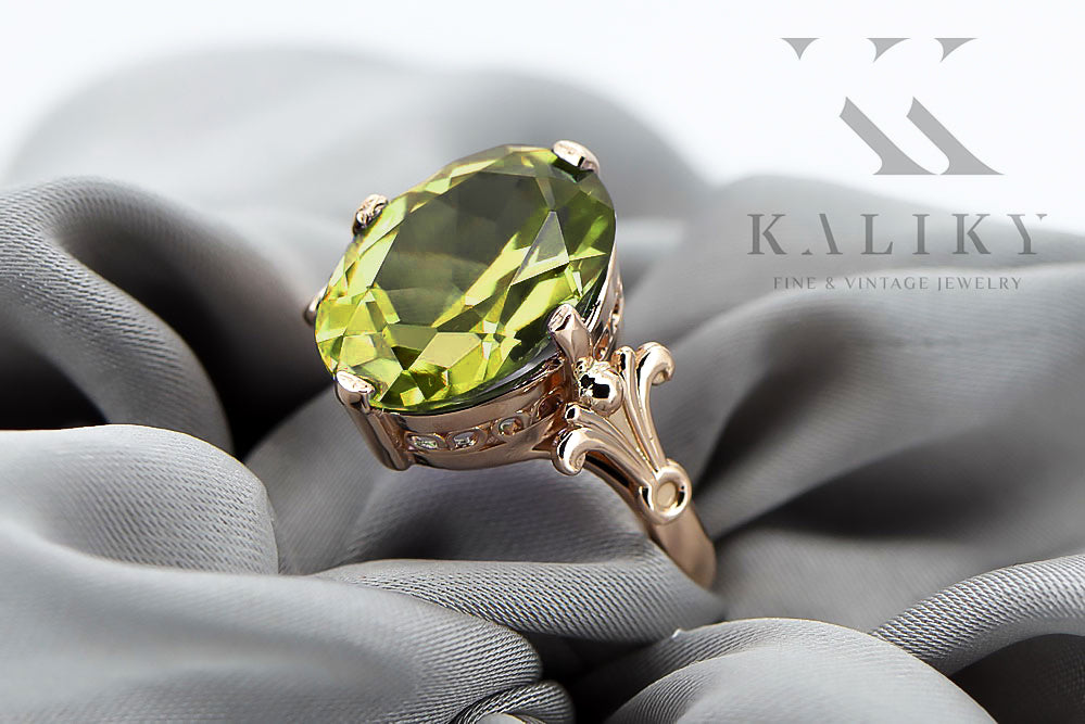 Ring Yellow Peridot Original Vintage 14K Rose Gold Vintage style vrc369r