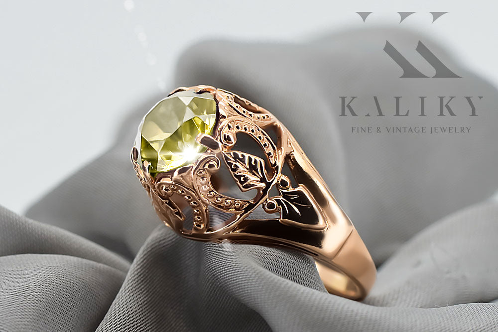 Ring Yellow Peridot Original Vintage 14K Rose Gold Vintage vrc080r