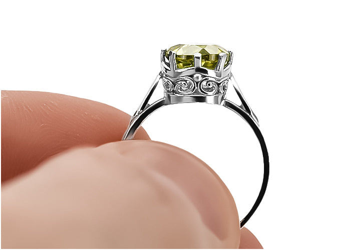 Ring Yellow Peridot Sterling silver 925 Vintage style vrc366s