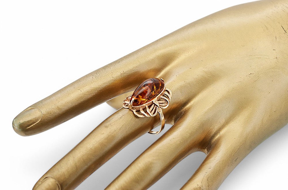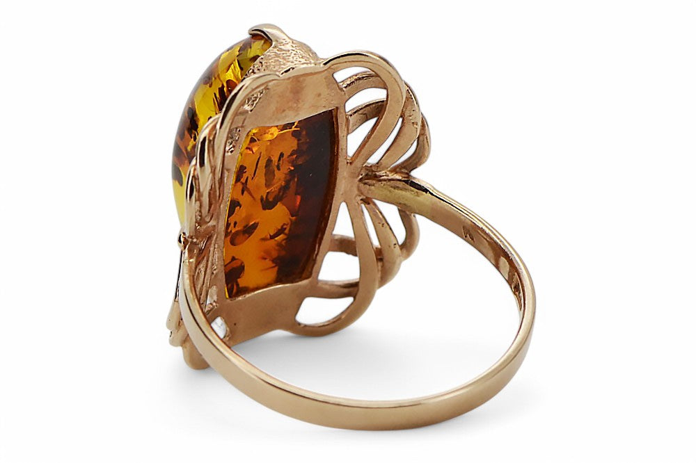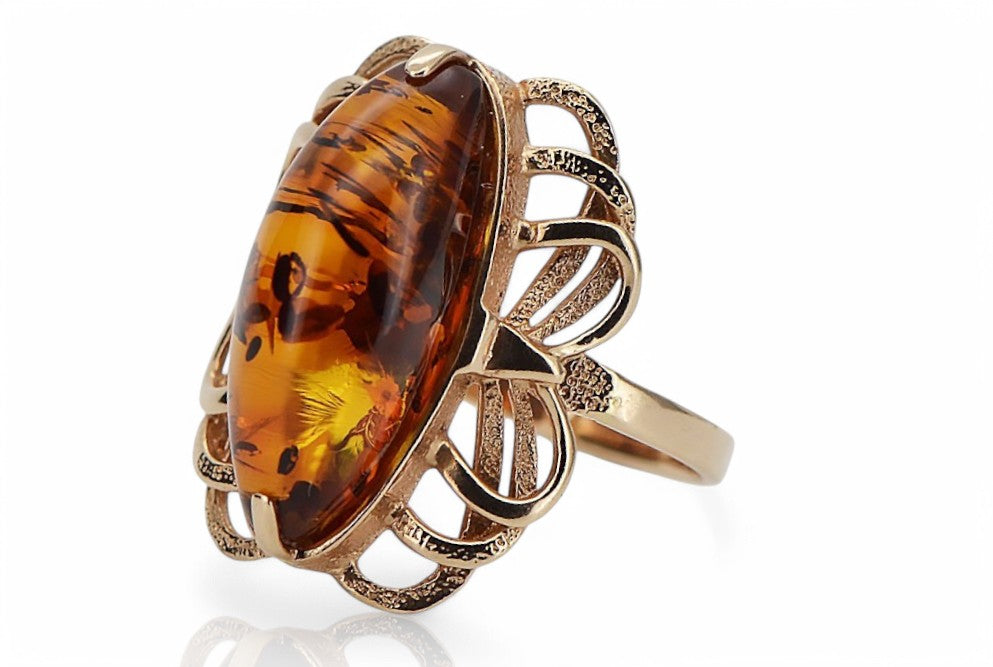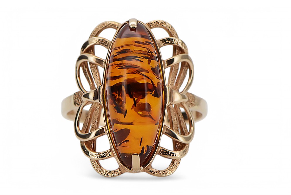 Rose 14k 585 gold amber ring vrab019 Russian Soviet Vintage jewelry style