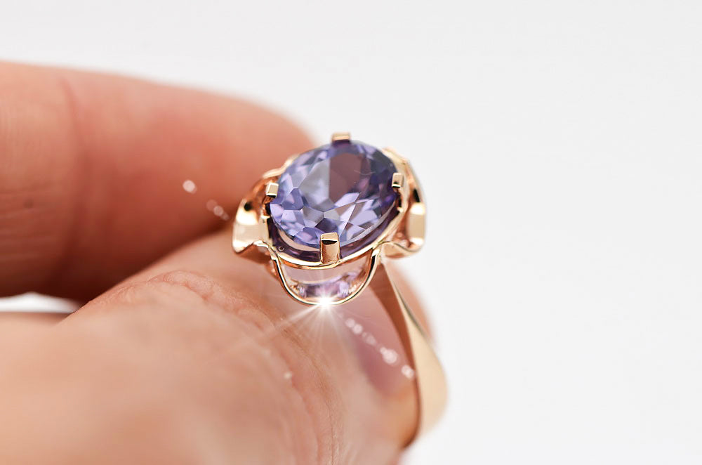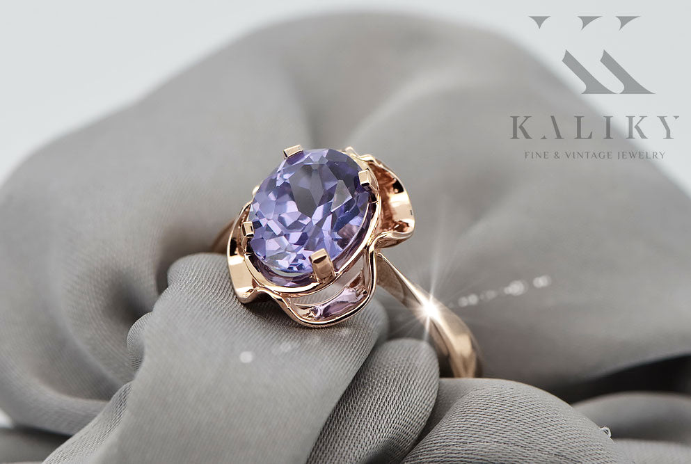 Rose 14K Gold 585 Alexandrite Ring vrc206 Russian Soviet Vintage style