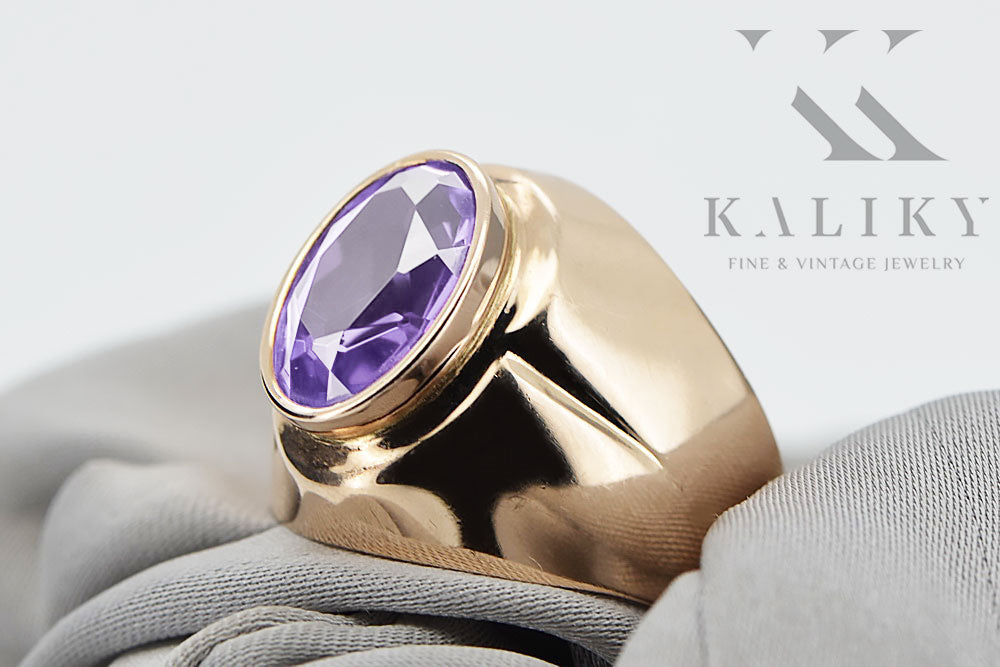 Rose 14k red pink Gold 14k Alexandrite Ring vrc296 Russian Soviet Vintage style.