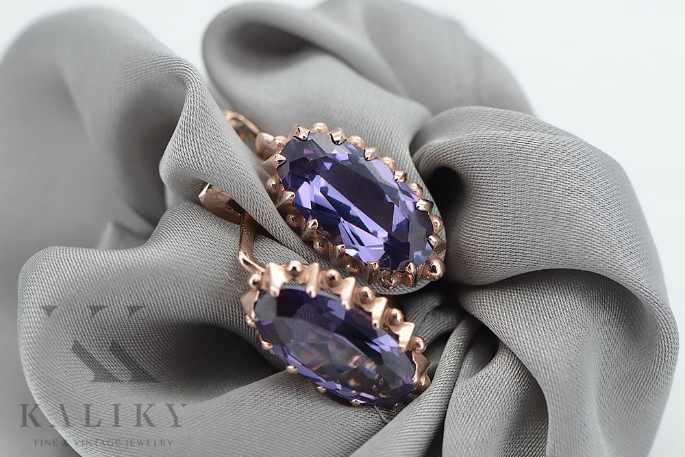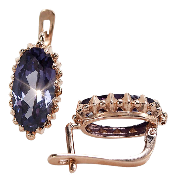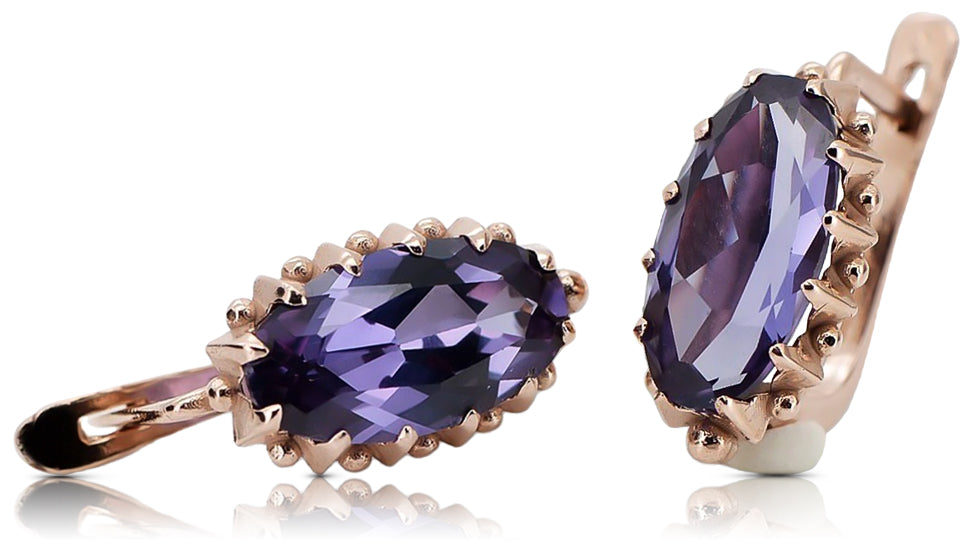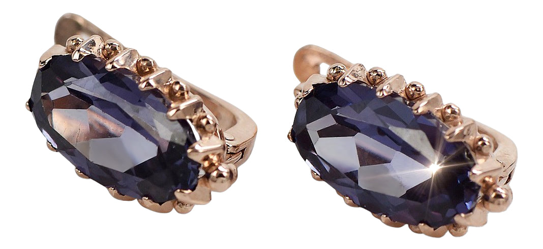 Rose pink 14k 585 gold aleksandryt earrings vec174 Vintage