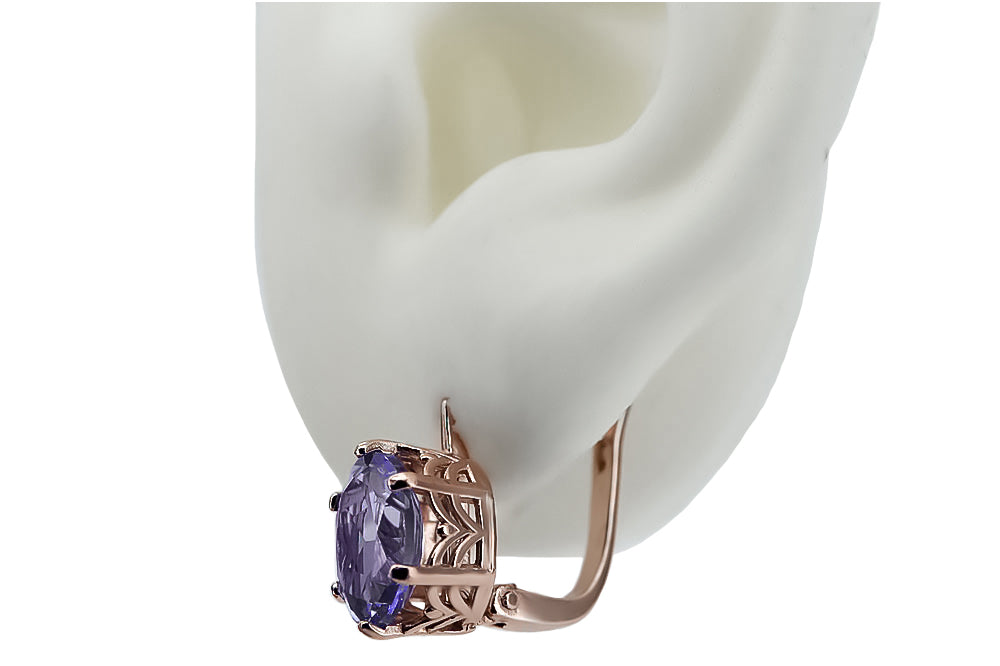 Rose pink 14k 585 gold alexandrite earrings vec003 Vintage Russian Soviet style