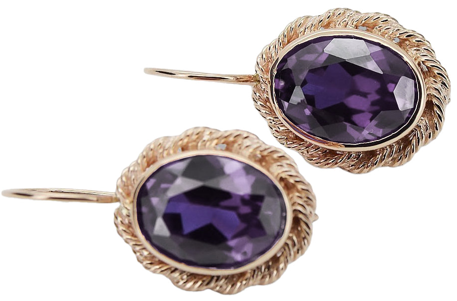 Discover the allure of a bygone era with these exquisite rose pink 14k 585 gold alexandrite earrings, a testament to the enduring elegance of Russian Soviet vintage jewelry. These earrings are more than just accessories; they are wearable pieces of history, reflecting the craftsmanship and artistic sensibility of the Soviet era. Each earring features a stunning oval-cut alexandrite, known for its mesmerizing color-changing properties, set in warm 14K rose gold.