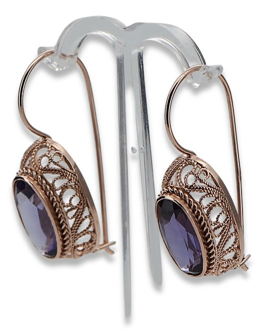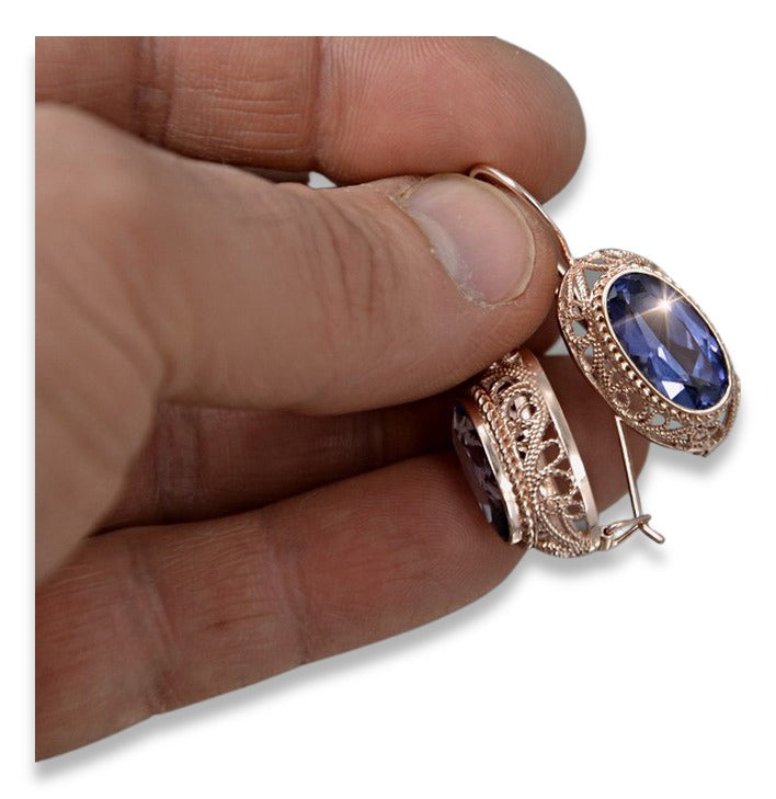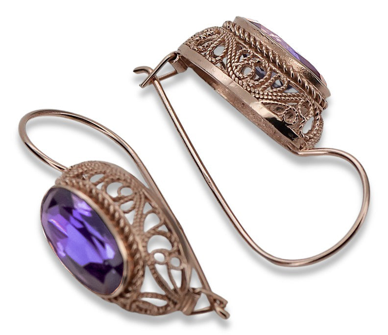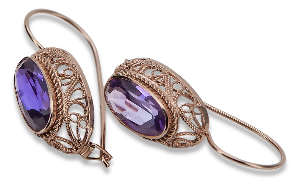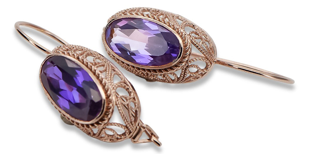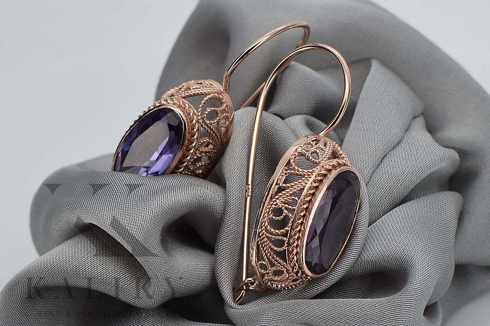 Rose pink 14k 585 gold alexandrite earrings vec023 Vintage Russian Soviet style vec023r-ax