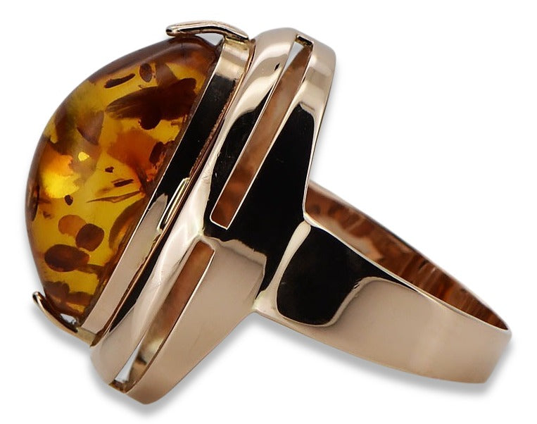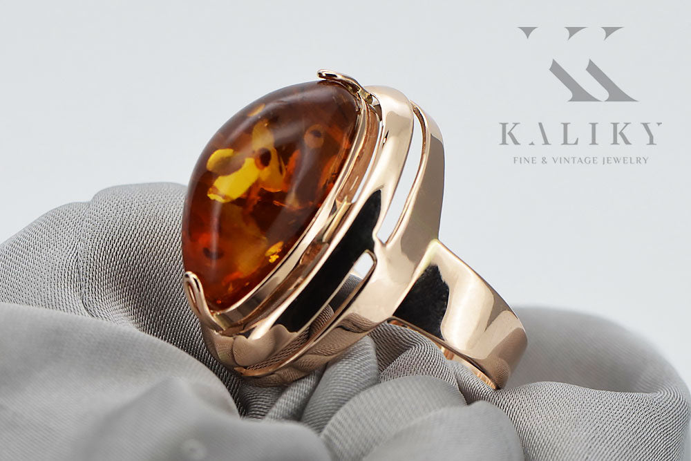 Rose pink 14k 585 gold amber ring vrab004 Russian Soviet jewelry style