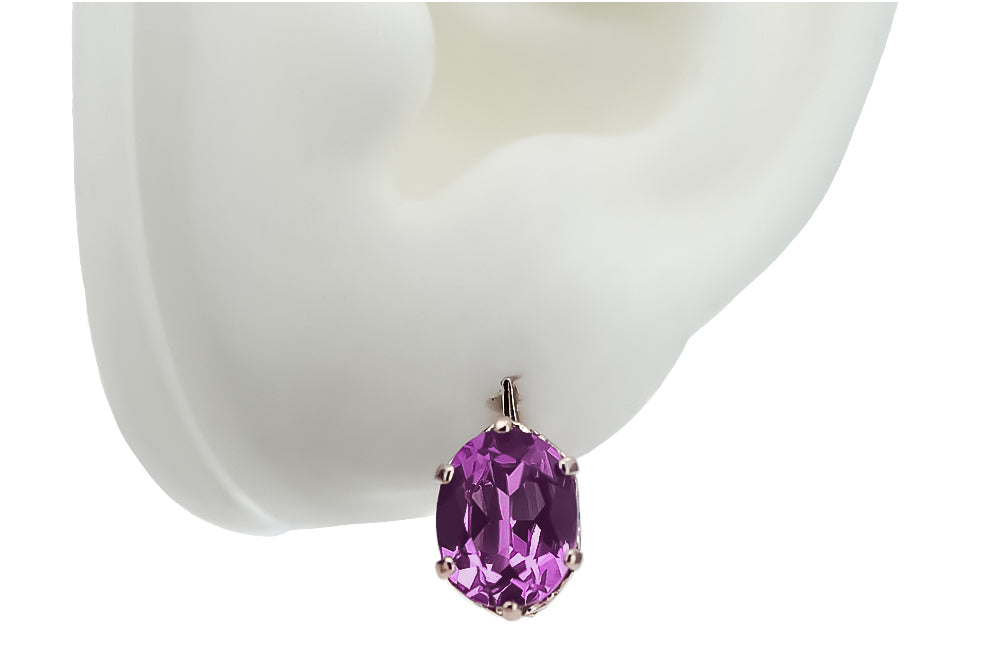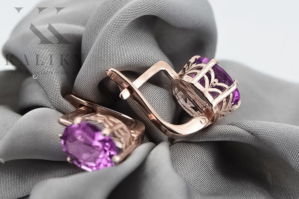 Rose pink 14k 585 gold amethyst earrings vec003 Vintage Russian Soviet style